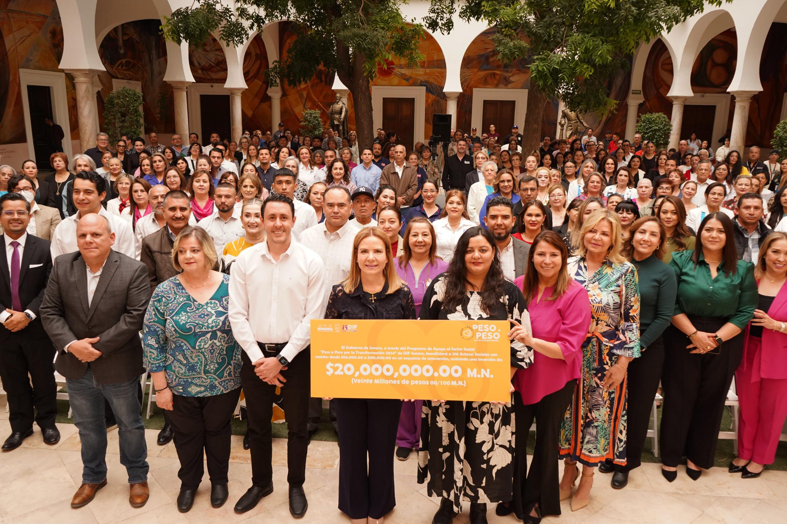 Hermosillo, Sonora a 06 de noviembre de 2024.- El Gobierno de Sonora, a través del Sistema para el Desarrollo Integral de la Familia (DIF Sonora), realizó la entrega de 20 millones de pesos en apoyos del programa Peso a Peso por la Transformación, a quienes trabajan a favor de las personas en situación de vulnerabilidad que viven o transitan por Sonora.