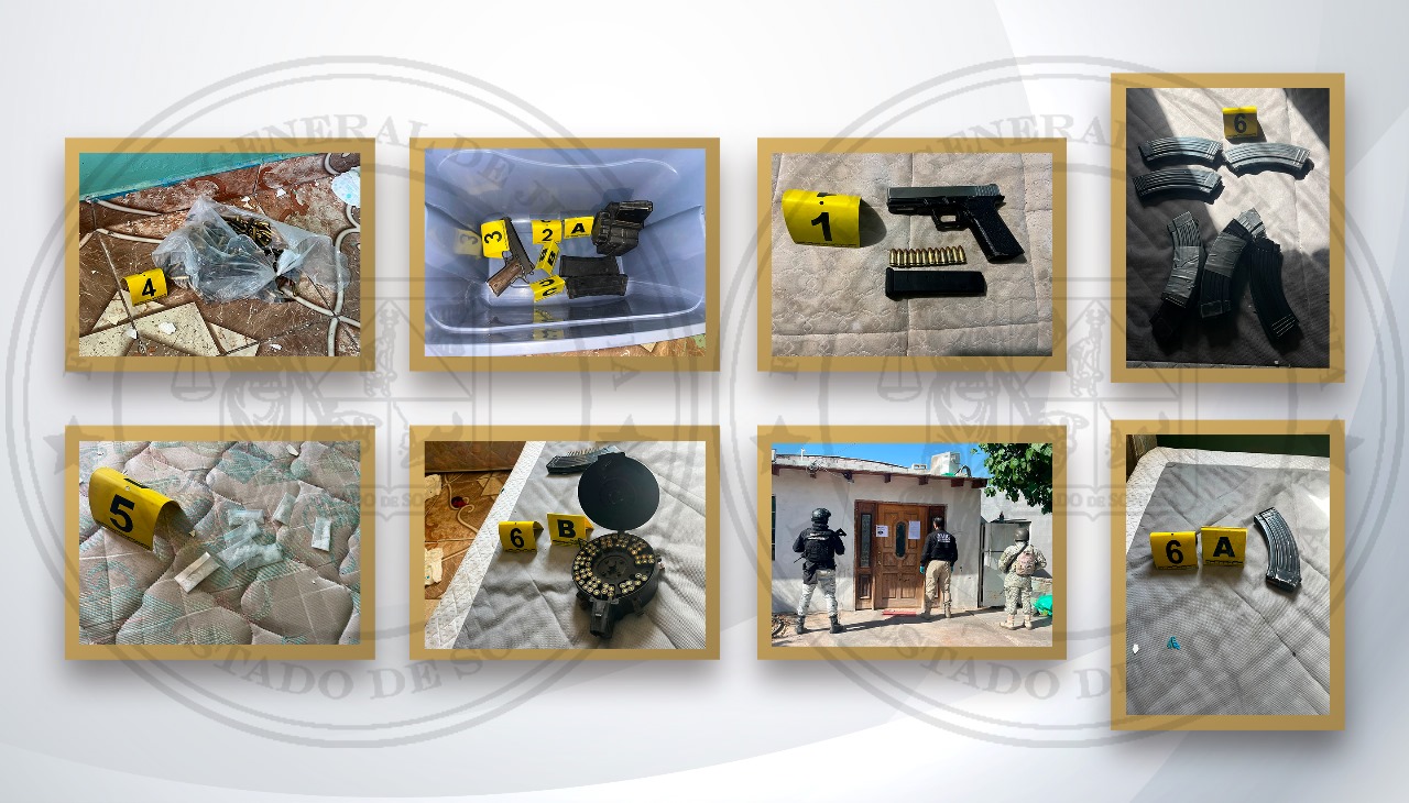 San Luis Río Colorado, Sonora a 07 de noviembre de 2024.- Durante un operativo conjunto entre la Agencia Ministerial de Investigación Criminal (AMIC), Secretaría de la Defensa Nacional (SEDENA) y Guardia Nacional (GN) se logró el aseguramiento de drogas, armas y municiones en el interior de un domicilio en la colonia Centro del Golfo de Santa Clara.