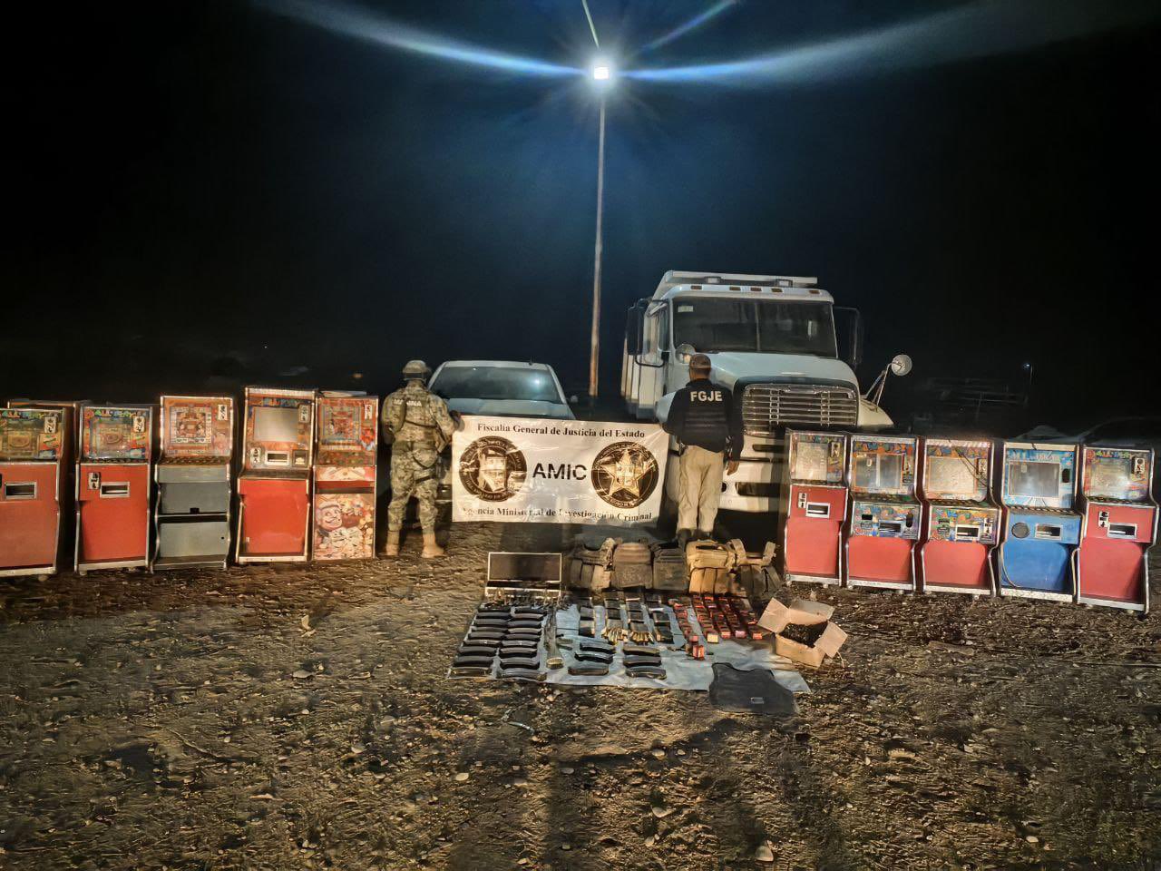 Operativo conjunto asegura armamento, vehículos y máquinas tragamonedas en Altar.