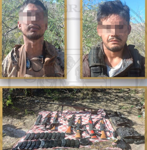 Detienen a dos hombres y aseguran arsenal en operativo conjunto en Sáric.