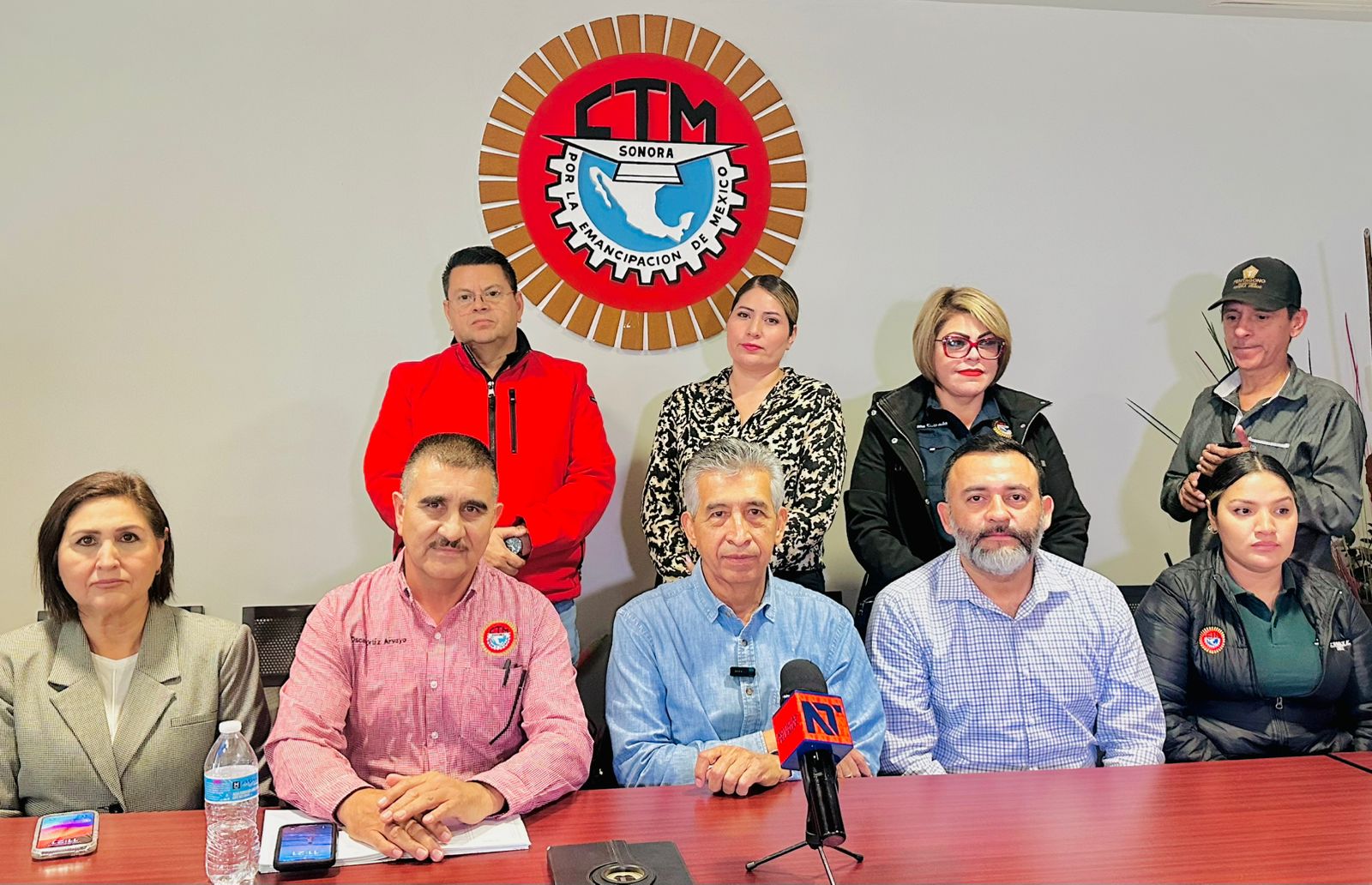 Hermosillo, Sonora a 25 de noviembre de 2024.– Durante una conferencia de prensa, la Confederación de Trabajadores de México (CTM) en Sonora, representada por su líder estatal Javier Villarreal Gámez, el diputado local Oscar Ortiz Arvayo y el secretario de organización Román Holguín Villegas, manifestó su preocupación por los recortes presupuestales federales a la Secretaría del Trabajo y Previsión Social (STPS) y su impacto en la justicia laboral tanto en el país como en el estado.