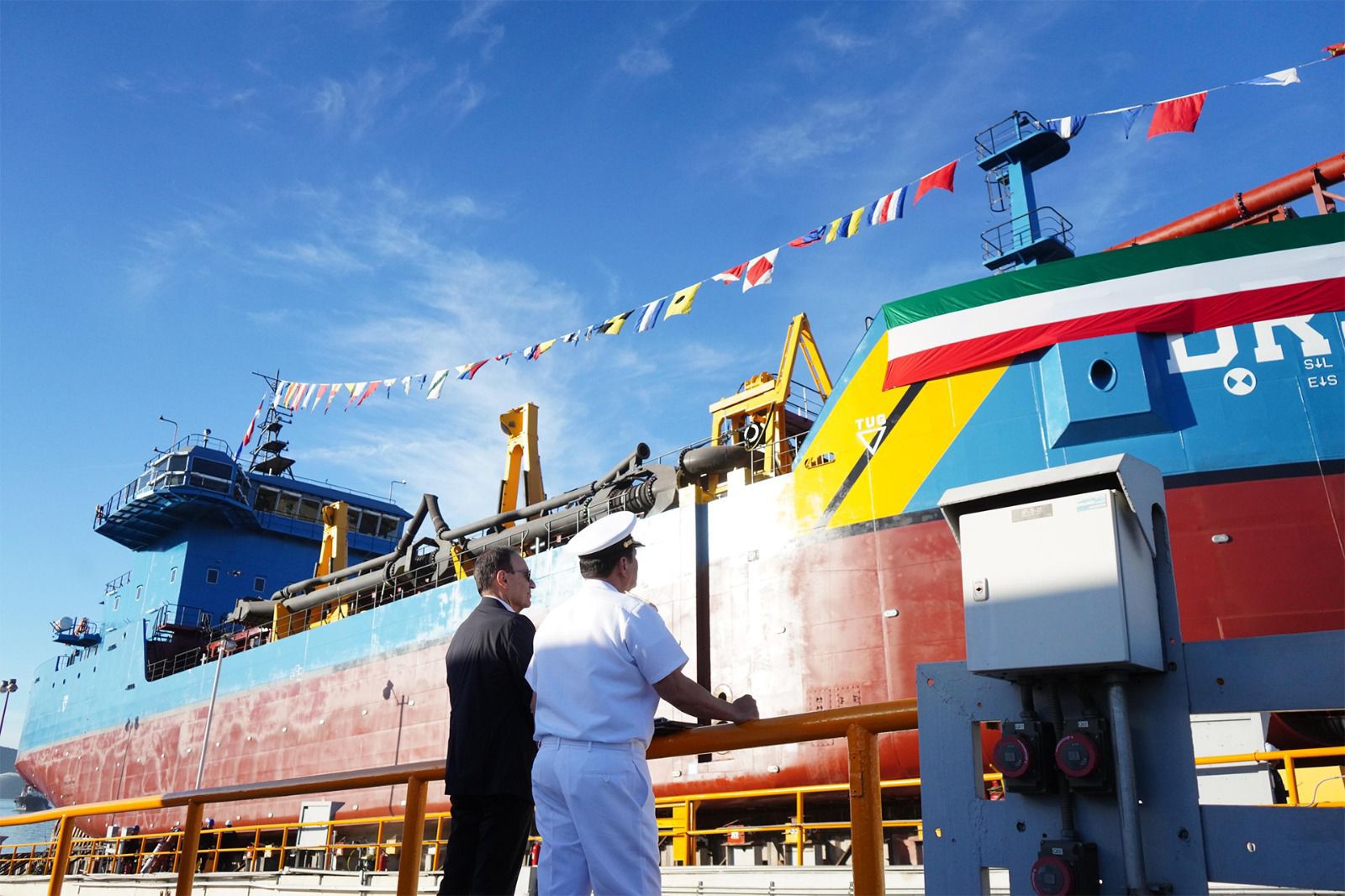 José Barradas Cobos, subsecretario de Marina, explicó que este buque cuenta con tecnología de última generación, con una capacidad de dragado eficiente y precisa, con la posibilidad de descargar material a tierra, manteniendo así vías marítimas navegables y eficientes.