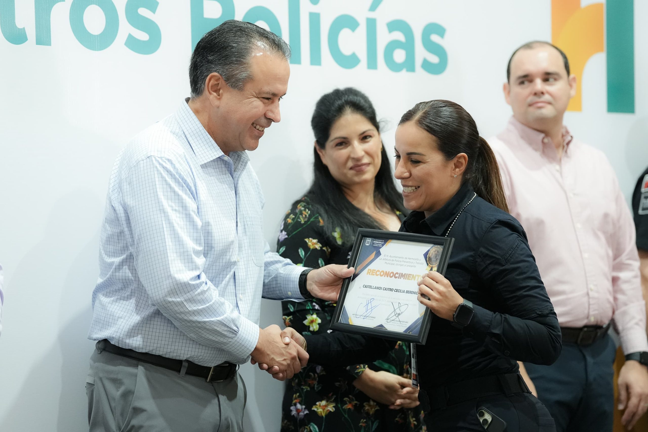 “Les extiendo mi felicitación a quienes el día de hoy han recibido este reconocimiento, pero sobre todo mi invitación a que no bajemos la guardia, a que no nos cansemos y entendamos que Hermosillo puede y debe ser una ciudad segura; que podamos seguir manteniendo esa categoría de ser la ciudad más segura del estado de Sonora y por supuesto que sigamos siendo ejemplo nacional e internacional en materia de seguridad”, expresó.
