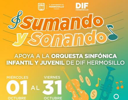 Hermosillo, Sonora a 01 de octubre, 2025.- La campaña “Sumando y Sonando”, que ofrecerá descuentos a las y los contribuyentes que donen alguna cantidad para comprar instrumentos en beneficio de la Orquesta Sinfónica Infantil y Juvenil de DIF Hermosillo, anunció la directora de Ingresos de Tesorería Municipal, Yazmina Anaya Camargo.