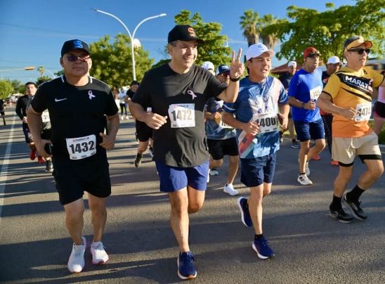 Acompañado por Adolfo Cota Montaño, presidente del Comité Organizador del Maratón, Toño Astiazarán agradeció a las más de 2 mil personas que participaron en esta fiesta deportiva que inició en la emblemática Plaza 5 de Mayo, punto de encuentro para familias, atletas y corredores locales.
