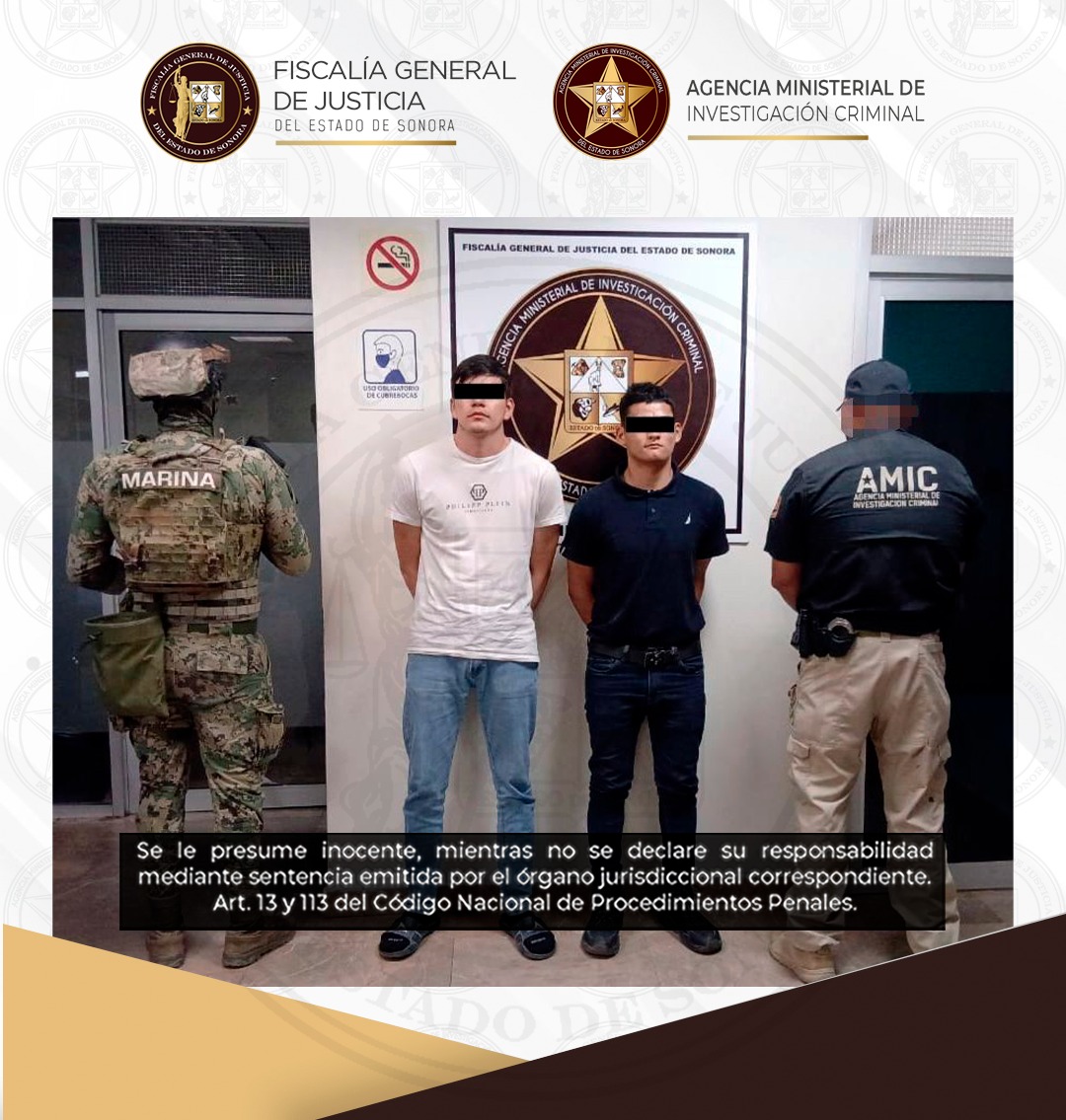 Cajeme, Sonora, 9 de noviembre de 2025.- La Fiscalía General de Justicia del Estado de Sonora (FGJES), a través de la Agencia Ministerial de Investigación Criminal (AMIC), ejecutó orden de aprehensión por reclusión en contra de Jesús “N”, de 23 años, y Manuel Ricardo “N”, de 21, por su probable responsabilidad en el delito de homicidio calificado con premeditación, alevosía y ventaja, cometido en número de tres, además de asociación delictuosa, hechos registrados en Cajeme.