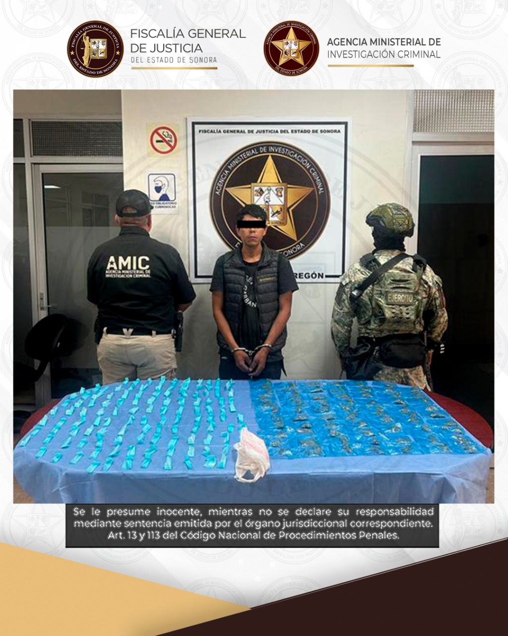 El detenido y la droga asegurada quedaron a disposición del agente del Ministerio Público para la integración de la carpeta de investigación correspondiente por delitos contra la salud; la FGJES, en coordinación con las fuerzas federales, reitera su compromiso de combatir la venta de drogas y la reincidencia delictiva en el sur de Sonora.