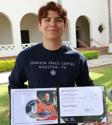 Hermosillo, Sonora a 20 de noviembre de 2025.- Juan Carlos Araiza Bernal, estudiante de séptimo semestre de Ingeniería en Sistemas de la Información en la Universidad de Sonora, presentó en el Centro Espacial Lyndon B. Johnson de la NASA, en Houston, Texas, un proyecto interdisciplinario que integra el desarrollo de un polímero innovador y la creación de un sistema informático para su implementación y gestión experimental.