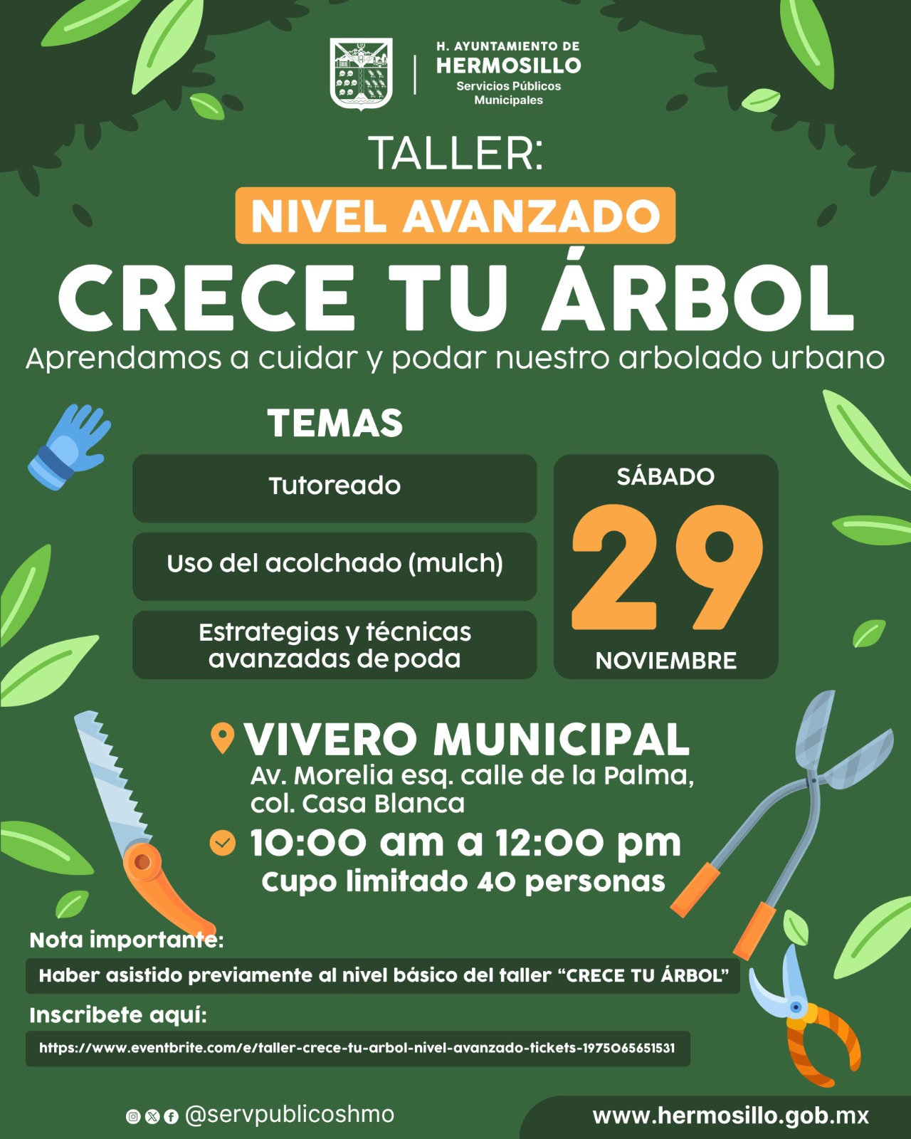 Realizará Gobierno de Hermosillo Taller “Crece Tu Árbol” nivel avanzando este sábado 29
