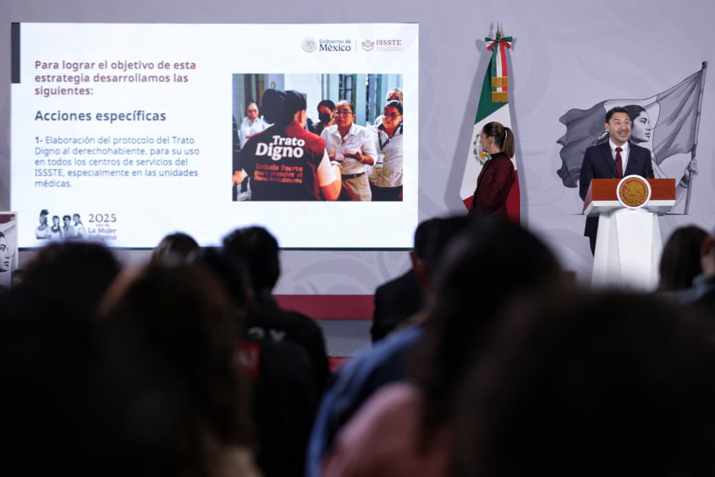 Al respecto, la Presidenta Claudia Sheinbaum Pardo subrayó que la Estrategia Trato Digno comenzó su implementación en el ISSSTE y se extendió al Instituto Mexicano del Seguro Social (IMSS) e IMSS Bienestar, a efecto de que todas las personas sean atendidas de manera cálida y oportuna.