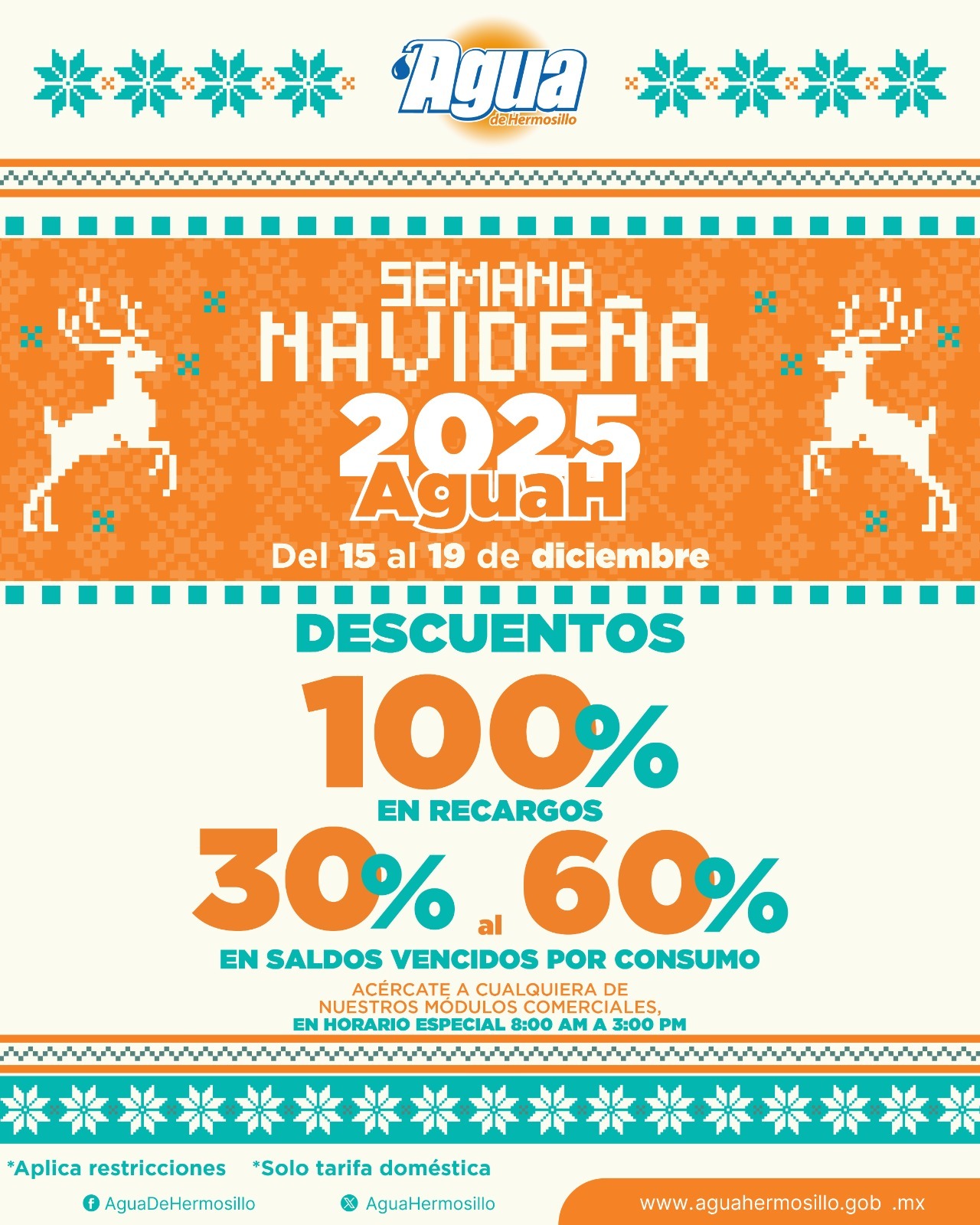 Anuncia Agua de Hermosillo la Semana Navideña con grandes descuentos en tarifa doméstica