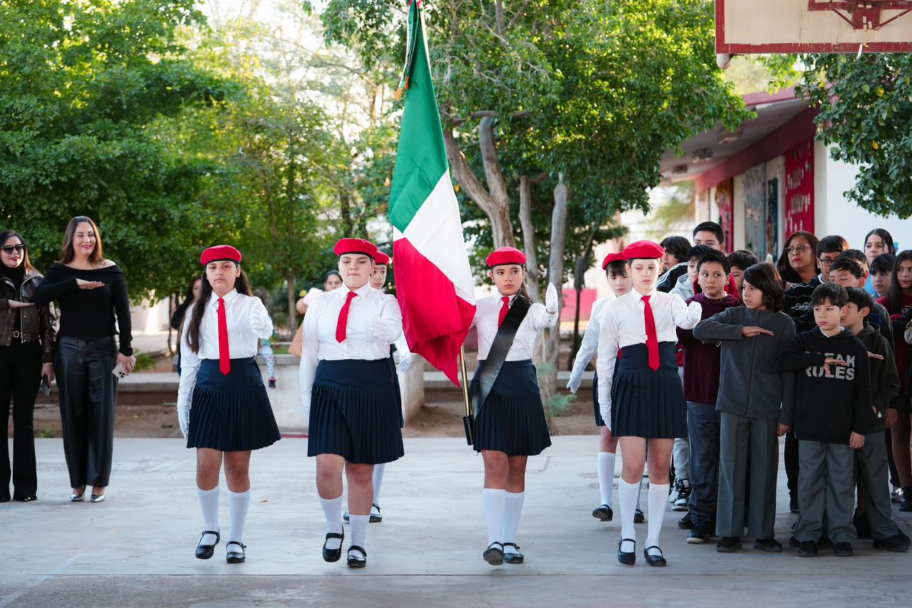 El titular de la Secretaría de Educación y Cultura (SEC), Froylán Gámez Gamboa, encabezó la ceremonia de Lunes Cívico en la primaria “Adolfo de la Huerta”, ubicada en la colonia San Bosco de Hermosillo, donde constató la reanudación de las clases.