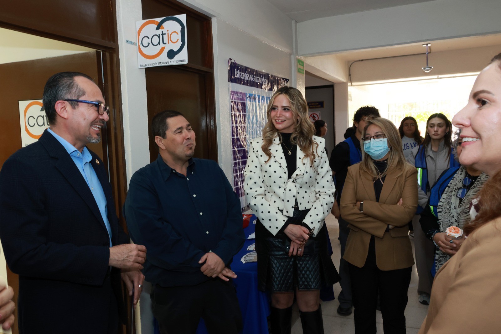 En la inauguración estuvieron presentes María Olga Quintana Zavala, coordinadora general de la Facultad Interdisciplinaria de Ciencias Biológicas y de Salud; Marisol Delgado Torres, subdirectora de Cooperación, Movilidad e Internacionalización; Ilse Guadalupe Solano Cuevas, responsable del Programa de Salud Estudiantil; y Silvia Urrutia Bañuelos, técnico académico del Departamento de Psicología y Ciencias de la Comunicación.