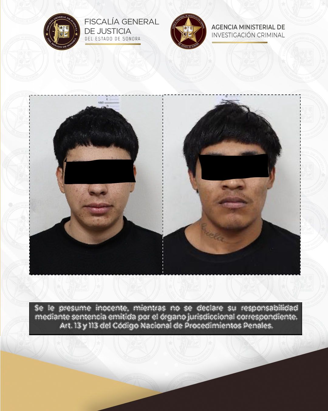 Durante la audiencia, la autoridad judicial resolvió vincular a proceso a Carlos Anselmo “N” y Josué Noé “N”, tras acreditar que eran integrantes de un grupo delictivo que operaba en el municipio de Cajeme, y que son probables responsables de los delitos de desaparición cometida por particulares con resultado de muerte y asociación delictuosa.