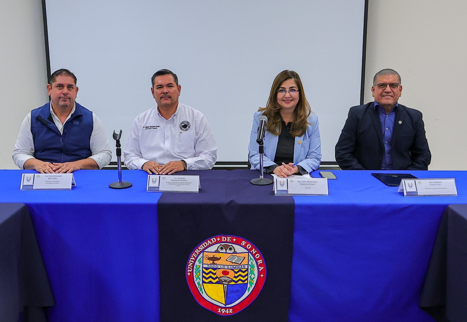 La comisión negociadora por parte de la Universidad de Sonora está integrada, además de la rectora, por Guillermo Cuamea Cruz y Julián Alfonso Moreno Alegría, de la Secretaría General Administrativa; Rafael Ramírez Villaescusa y Verónica Yolanda Hernández Castro, de la Abogacía General; Alma Teresita del Niño Jesús Velarde Mendívil, Francisca Guadalupe Valenzuela Moroyoqui, Francisco Javier Acuña Apocada y José Luis Díaz Beltrán; de la Dirección de Recursos Humanos; Juan Carlos Gálvez Ruiz y Susana Angélica Pastrana Corral, directores de los campus de Hermosillo y Caborca, respectivamente; Jesús Moreno Durazo, de la Dirección de Comunicación; Aaron Chávez Valdés, de la Jefatura del Departamento de Economía; y Manuel Ramón Ramírez Celaya, de la Dirección de Infraestructura y Adquisiciones.