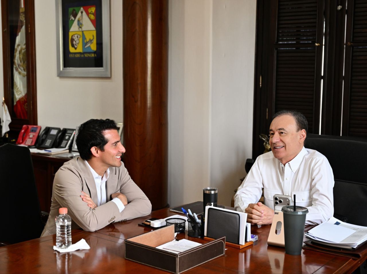 El gobernador Alfonso Durazo Montaño y el director de la Conade, Rommel Pacheco, impulsan el fortalecimiento del deporte en Sonora mediante el convenio entre el Gobierno de Sonora y la Conade, estableciendo una coordinación directa con el Gobierno de México.