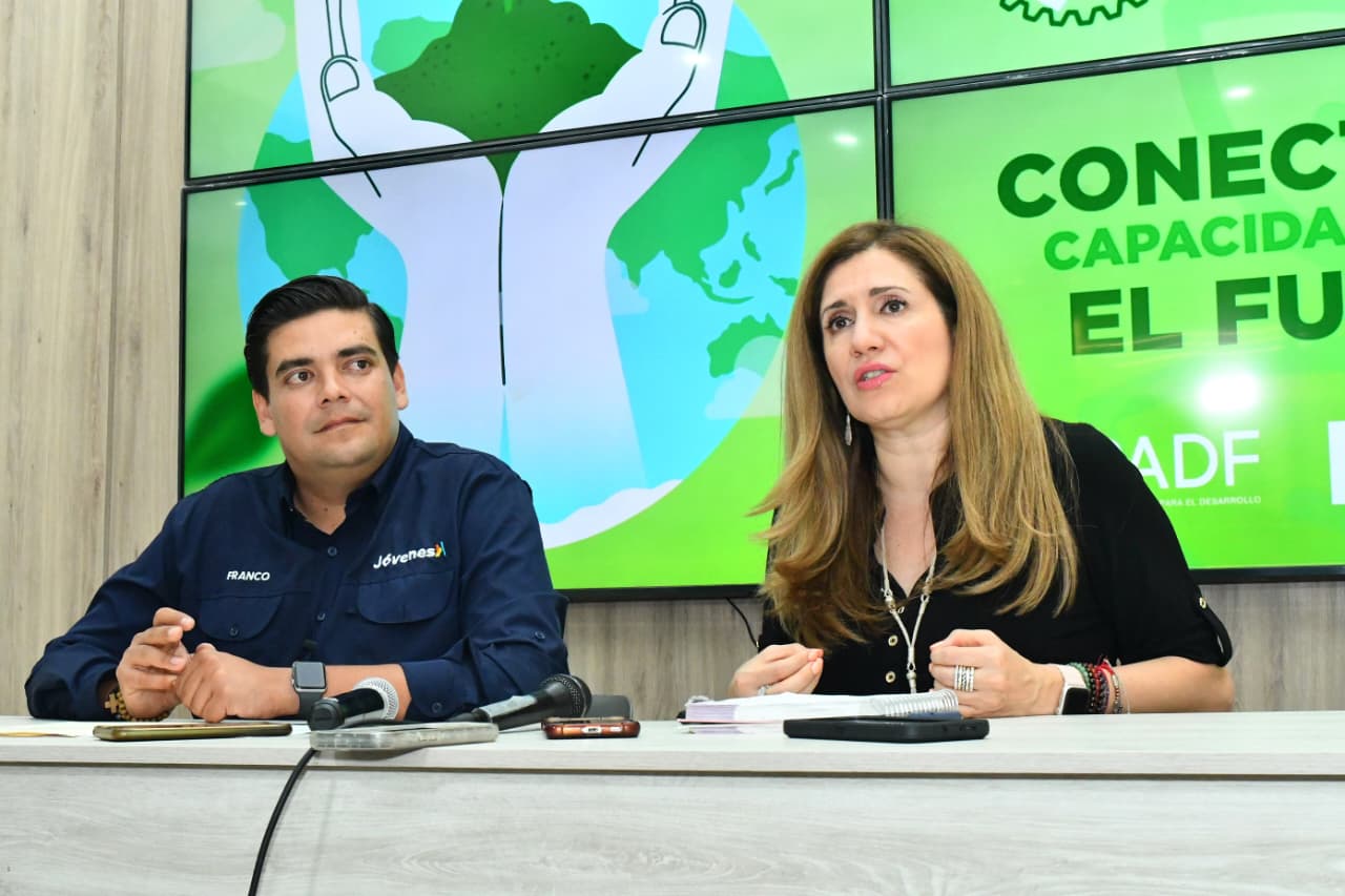 Francisco Villaescusa, director del Instituto Hermosillense de la Juventud acompañado de Valeria Uribe en representación de la Fundación Panamericana para el Desarrollo (PADF), precisó que el programa contará con una bolsa de un millón de euros aportados por la Unión Europea, recurso que se aplicará durante tres años en acciones de capacitación, acompañamiento y formación para jóvenes.