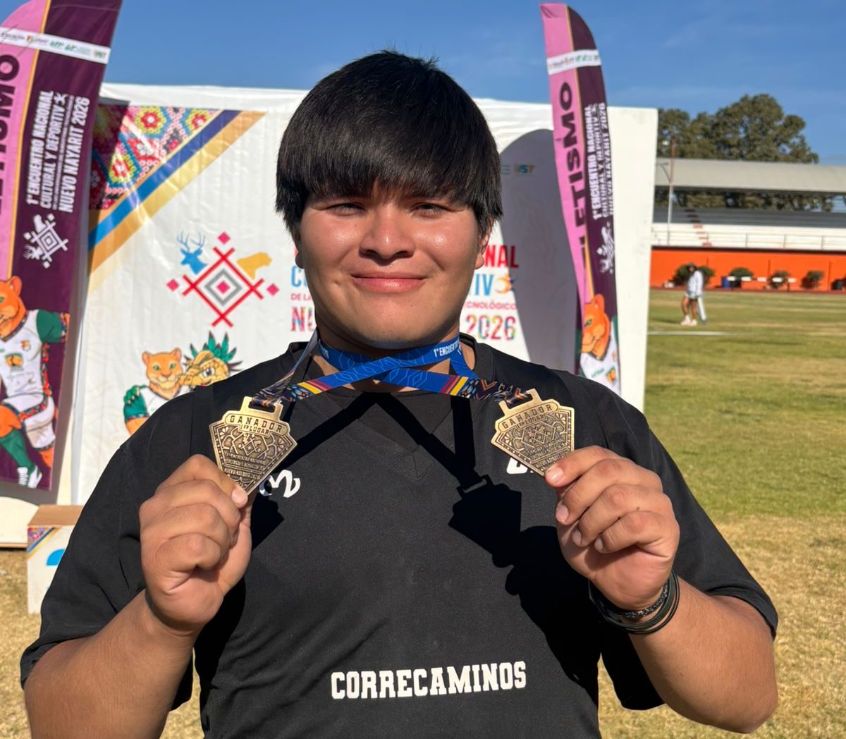 El joven se coronó campeón nacional en lanzamiento de bala con una marca de 16.02 metros y, posteriormente, reafirmó su dominio al obtener la segunda medalla de oro en lanzamiento de disco, con un registro de 44.68 metros, en la pista de la unidad deportiva de Bahía de Banderas.